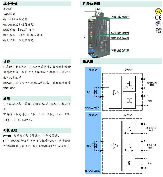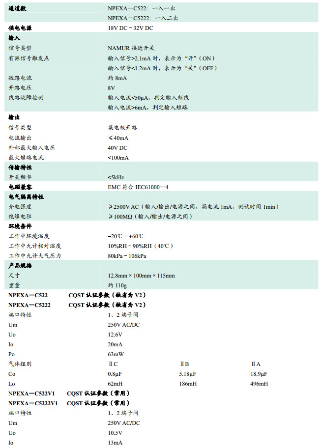 NPEXA-C522,NPEXA-C5222,檢測端隔離式安全柵