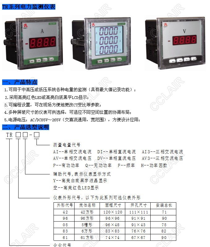 TR42-AI,TR42-DI,TR42-AI3,TR42Y-AI,TR42Y-DI,TR42Y-AI3,TR電力監(jiān)測(cè)儀表