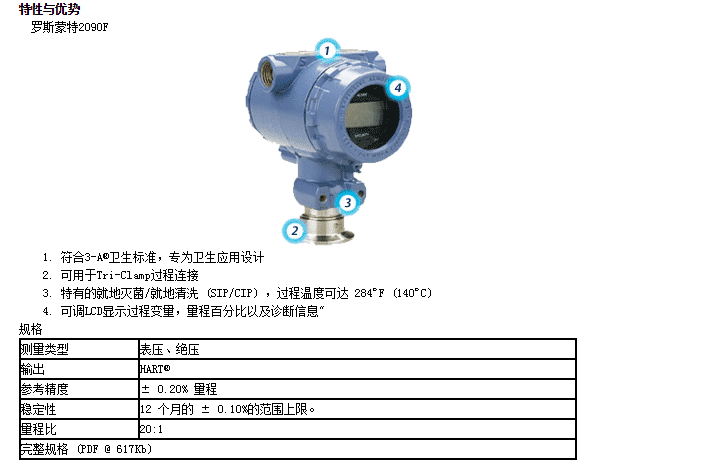 羅斯蒙特 2090F衛(wèi)生型壓力變送器