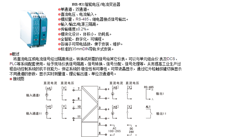 NHR-M31-X-25/X-0/X-A,NHR-M31-X-25/X-0/X-D,NHR-M31-X,NHR-M31-Y,智能電壓/電流變送器
