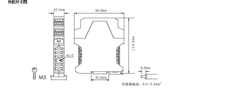 使用工業(yè)控制柜中常用的標(biāo)準(zhǔn)35mm導(dǎo)軌安裝