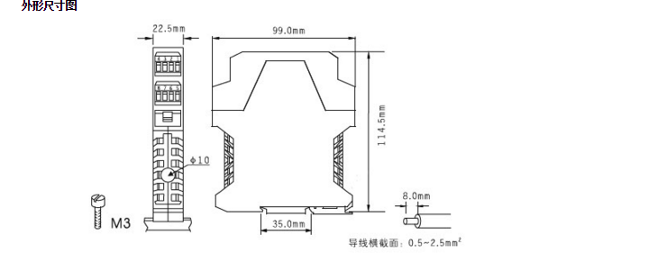 使用工業(yè)控制柜中常用的標(biāo)準(zhǔn)35mm導(dǎo)軌安裝
