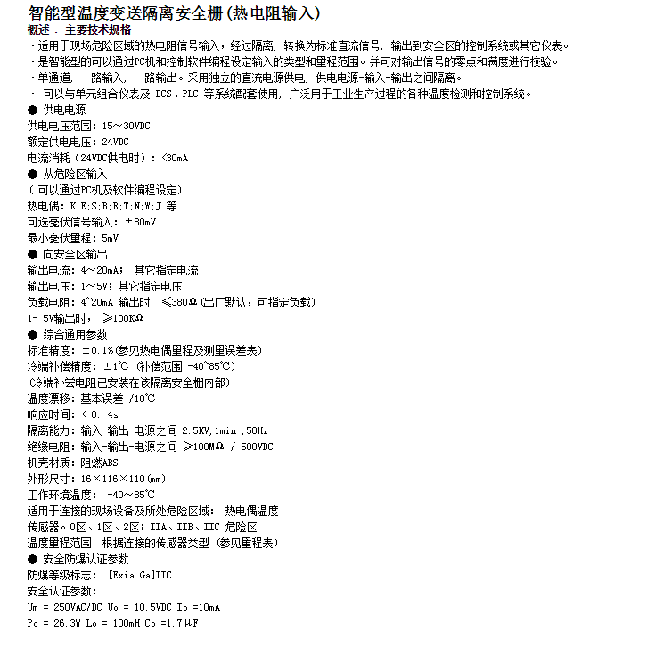 KH-5918,智能型溫度變送隔離安全柵