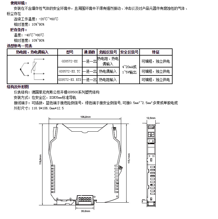 GS8572-EX,GS8572-EX.TC,GS8572-EX.RTD,隔離式安全柵