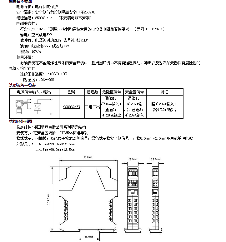 GS8039-EX,電流信號輸入、輸出隔離式安全柵