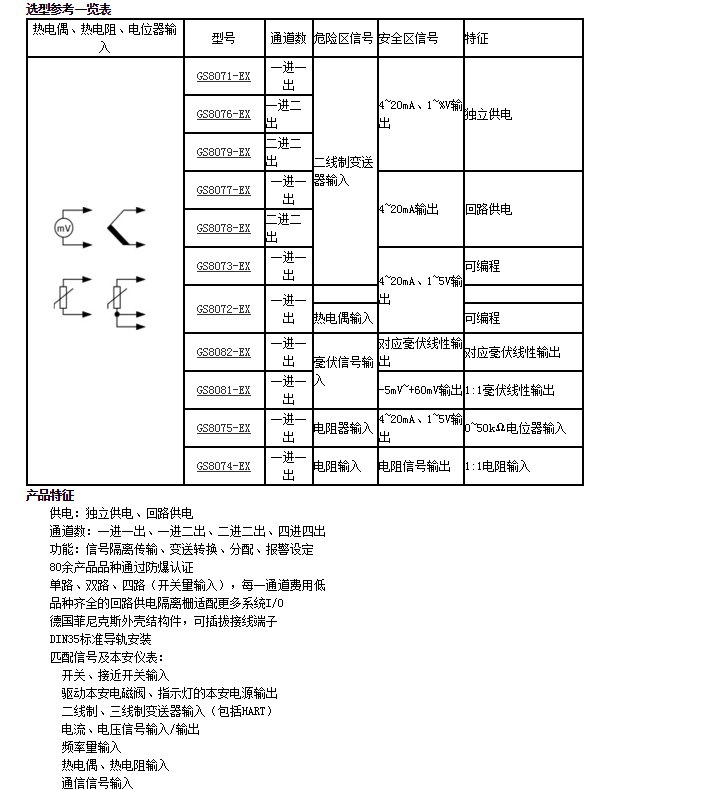 GS8071-EX,GS8076-EX,GS8079-EX,GS8077-EX,GS8078-EX,輸入隔離式安全柵