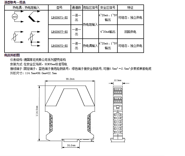 LBGS8071-EX,LBGS8077-EX,LBGS8072-EX,熱電偶、熱電阻輸入浪涌保護(hù)隔離柵