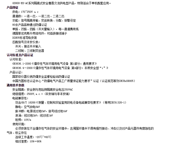 GS8011-EX,GS8012-EX,GS8047-EX,GS8035-EX,GS8036-EX,隔離式安全柵
