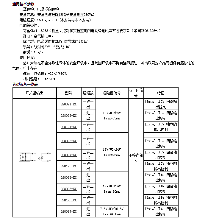GS8021-EX,GS8022-EX,GS8121-EX,GS8023-EX,GS8024-EX,開關(guān)量輸出隔離式安全柵