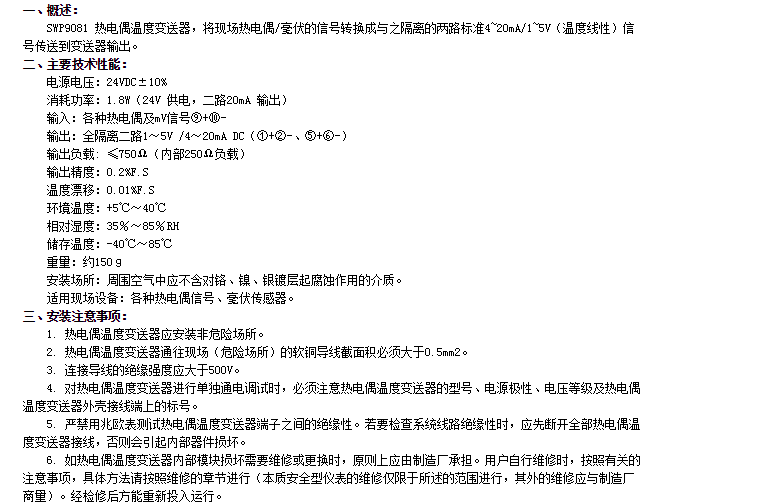 SWP9081,熱電偶溫度變送器