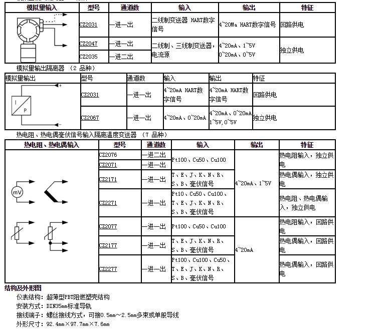 CZ2031,CZ2047,CZ2035,CZ2031,CZ2067,CZ2076,信號隔離器、轉換器