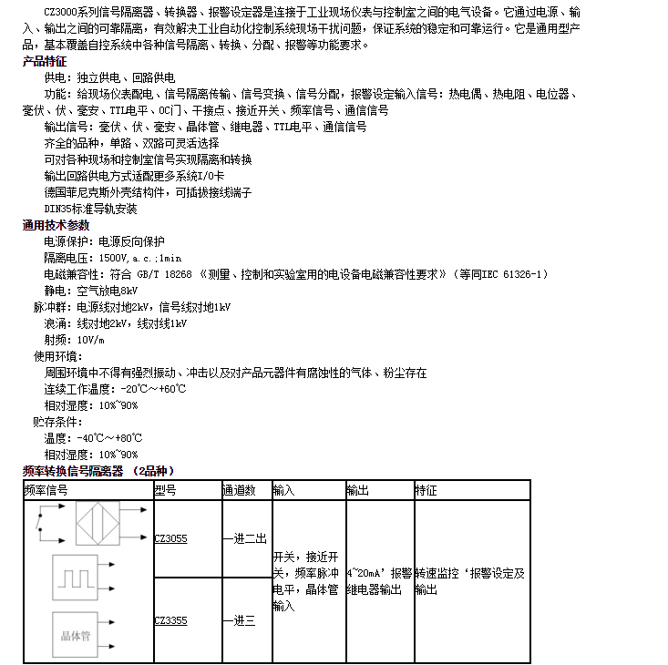 CZ3055,CZ3355,信號(hào)隔離器、轉(zhuǎn)換器、報(bào)警設(shè)定器