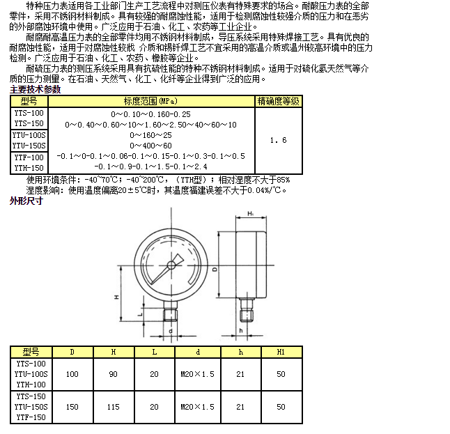 YTS-100,YTU-100S,YTH-100,YTS-150,YTU-150S,YTF-150,特種壓力表