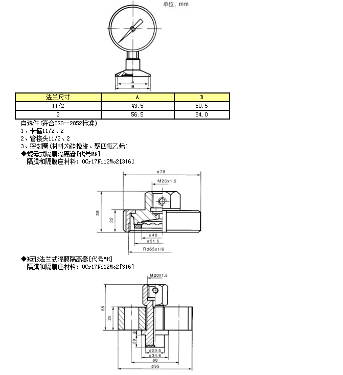 衛(wèi)生型隔膜壓力表是由通用型壓力儀表與隔膜隔離器組成一個(gè)系統(tǒng)的隔膜壓力表。具有在工藝現(xiàn)場(chǎng)裝拆快捷方便、不易污染、容易清洗、安全可靠的安全等優(yōu)點(diǎn)。能滿(mǎn)足藥品生產(chǎn)質(zhì)量規(guī)范(GMP)的要求。在制藥、食品、飲水、水處理等行業(yè)對(duì)儀表有衛(wèi)生要求的工藝流程中得到廣泛應(yīng)用。