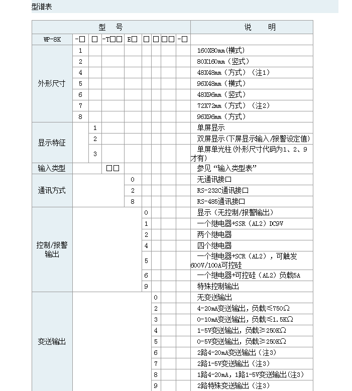 WP-8K-91-T03E8220-T,WP-8K-12,WP-8K-83,智能數(shù)字/光柱顯示控制儀