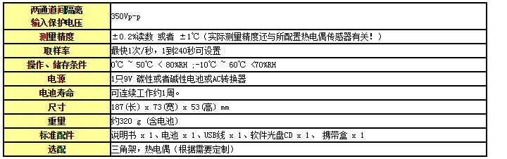支持K/J/E/T/N/S/R/B等8種類型熱電偶探頭,能測量-200℃-1820℃范圍內(nèi)的溫度。