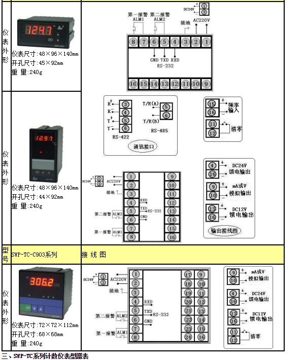 二、SWP-TC系列計(jì)數(shù)儀表接線圖