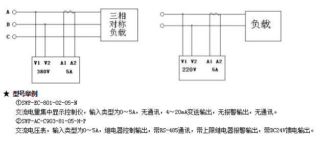 SWP-LED系列交流電量集中測(cè)量顯示控制儀用于測(cè)量采樣電壓和電流互感器信號(hào),測(cè)量頻率,電壓和電流以及功率因數(shù)和單相有功功率P有=U·I·CosΦ或三相有功功率P有= ![]()