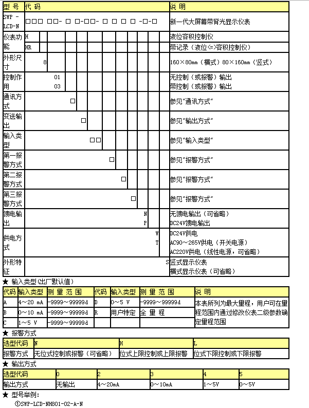 SWP-LCD-NH系列液位<=>容積控制儀可對(duì)各種形狀罐體進(jìn)行液位<=>容積轉(zhuǎn)換測(cè)量控制。