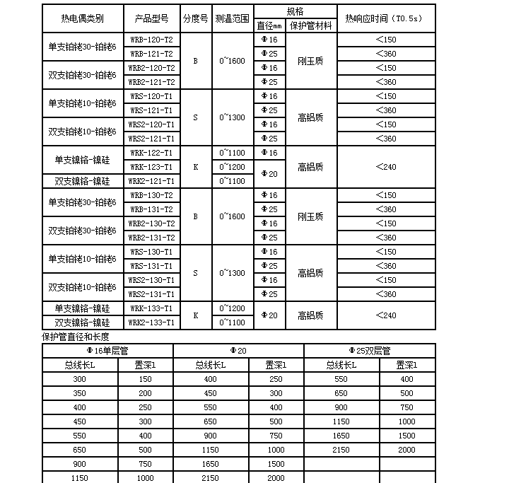 產(chǎn)品執(zhí)行標(biāo)準(zhǔn):IEC584、IEC1515、GB/T16839-1997、JB/T5582-91