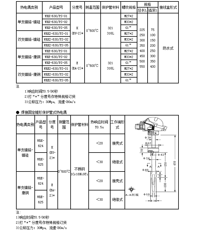 WRB-120-T2,WRJ-130,WRE2-330,WRK-630/PS-05,WRE-530,裝配熱電偶