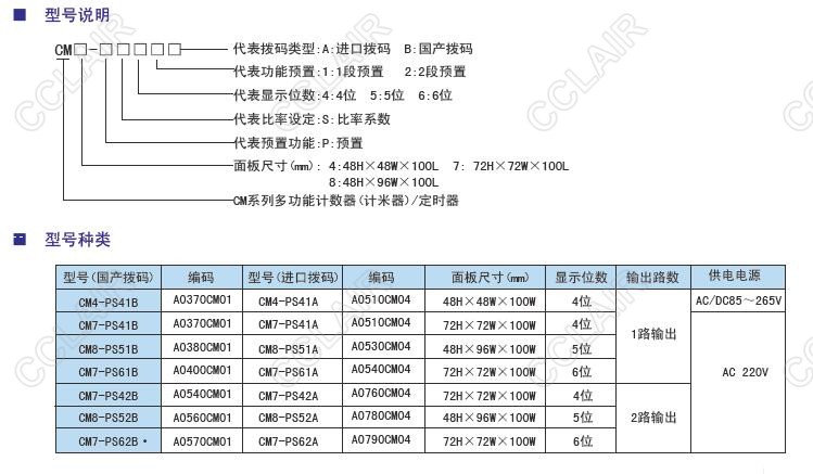 CM4-PS41B,CM7-PS41B,CM8-PS51B,CM7-PS61B,CM7-PS42B,CM8-PS52B,CM7-PS62B,CM多功能計(jì)數(shù)器/計(jì)米器/定時(shí)器