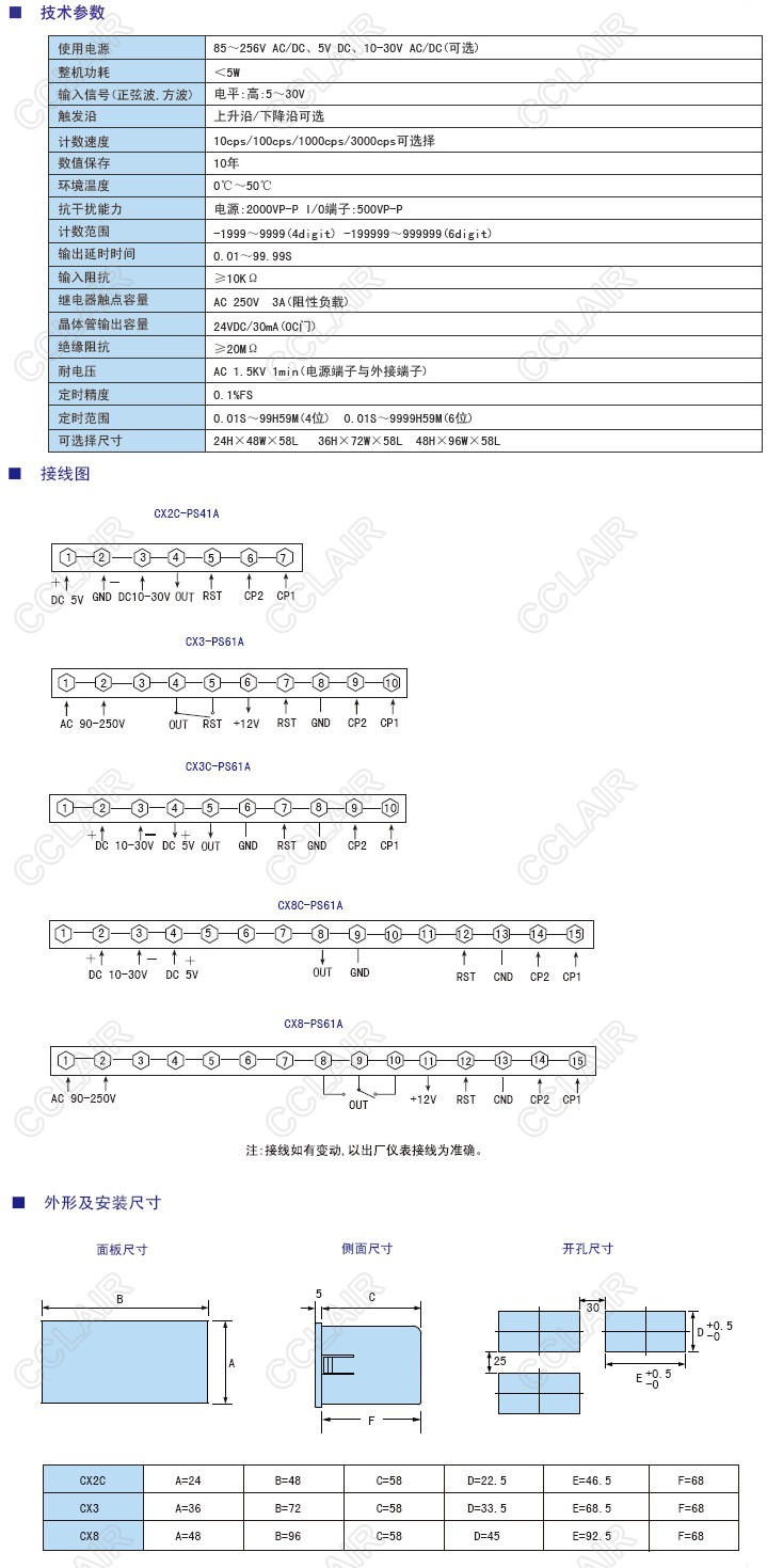 CX2C-PS41A,CX3C-PS61A,CX8C-PS61A,CX3-PS61A,CX8-PS61A,CX計數(shù)器/計米器/定時器