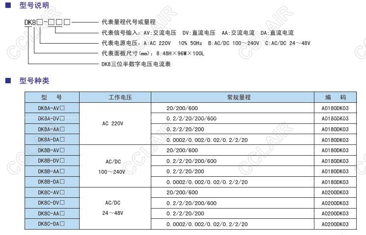 型號: DK8A-AV20,DK8A-AV200,DK8A-AV600,DK8A-DV0.2,DK8A-DV2