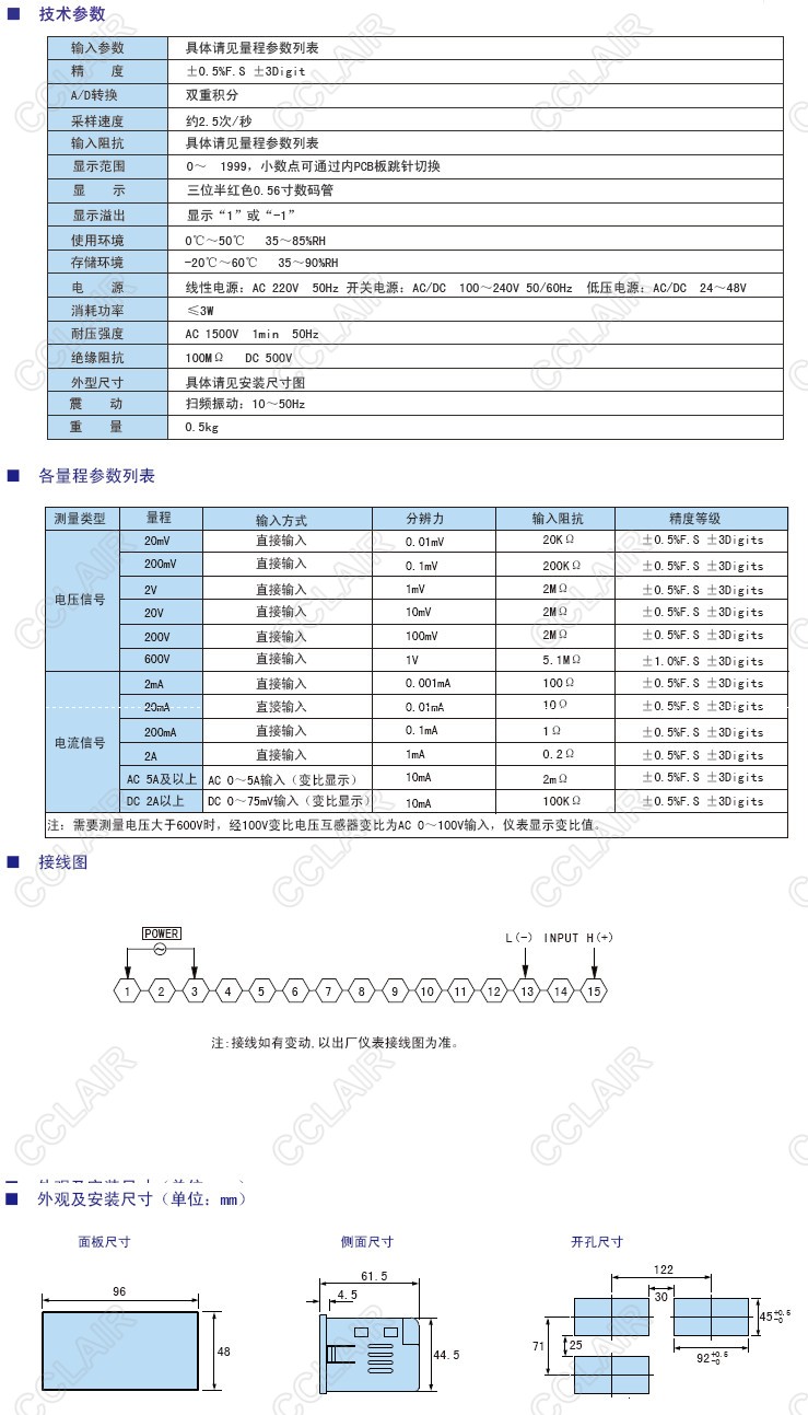 DK8A-AV20,DK8A-AV200,DK8A-AV600,DK8A-DV0.2,DK8A-DV2,DK8A三位半短模具單測量顯示電壓電流表