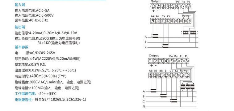 無功功率變送器輸出范圍:DC4-20mA、0-20mA、0-5V、0-10V、1-5V等用戶需要的標準信號