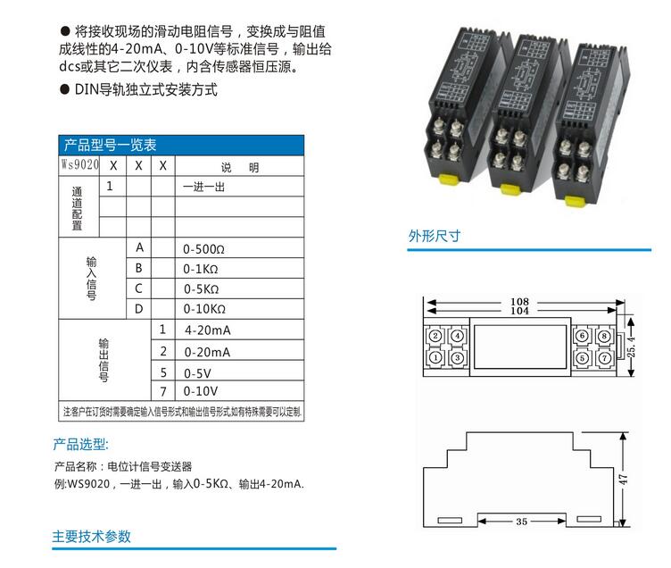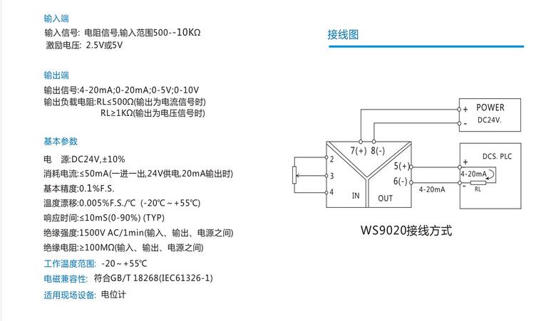 WS9020電位計變送器 電位計信號隔離器技術(shù)參數(shù)詳細(xì)介紹: