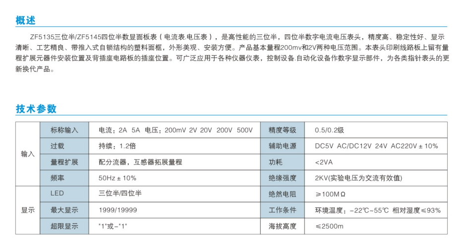 ZF5135A數(shù)顯面板表 ZF5135B數(shù)顯直流面板表