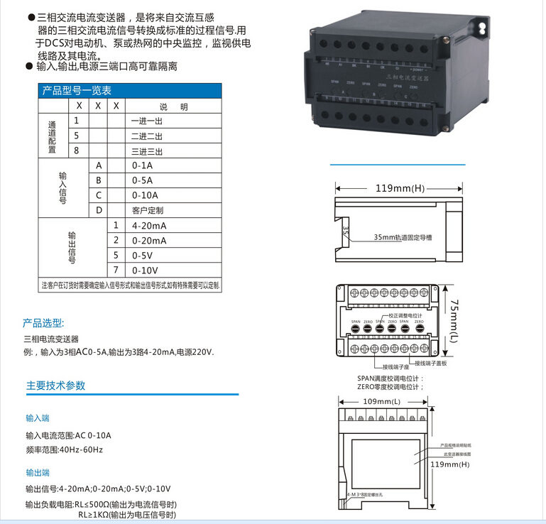 三相電壓變送器輸入范圍:AC0-100V、0-220V、0-380V、AC0-500V等用戶(hù)特定規(guī)格(備注:購(gòu)買(mǎi)時(shí)請(qǐng)注明電壓信號(hào)是三相三線(xiàn)還是三相四線(xiàn))三相電壓變送器工作電源:AC/DC220V,功耗:2W
