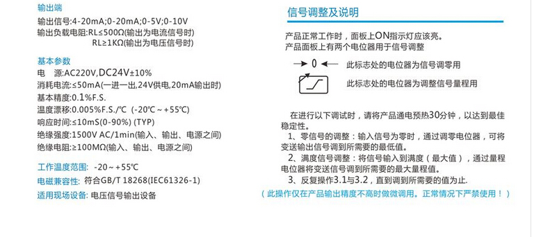 電壓變送器輸出范圍:DC4-20mA、0-20mA、0-5V、0-10V、1-5V等用戶需要的標(biāo)準(zhǔn)信