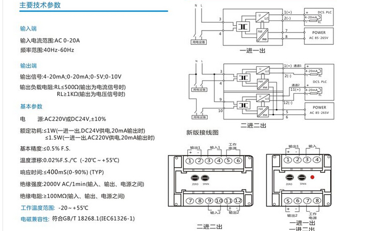 JD204I2電流變送器  電源AC/DC85-265V
