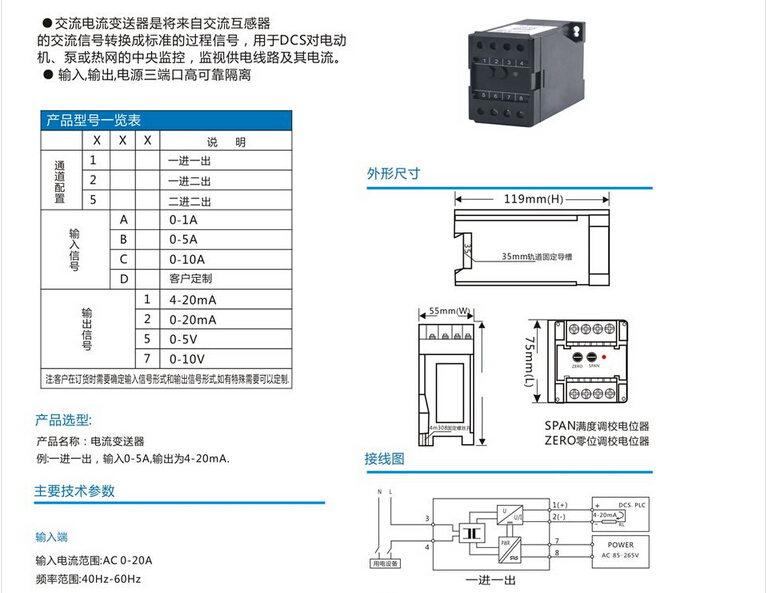 JD204I2電流變送器  精度0.5%級(jí)  導(dǎo)軌/卡規(guī)安裝