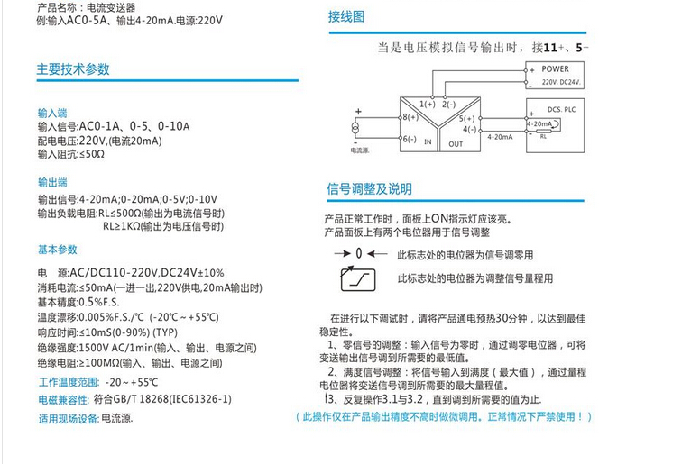 AJD194-BS41電流變送器 輸入AC0-5A 輸出4-20mA