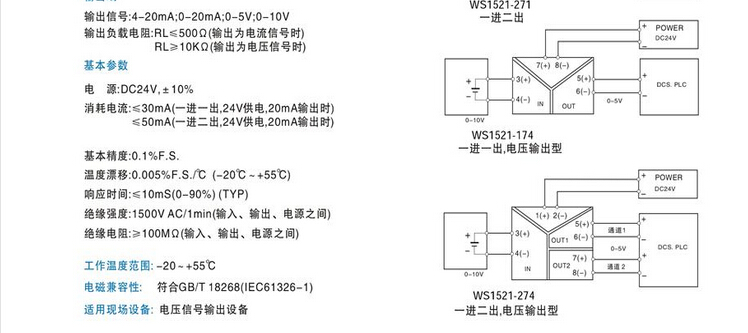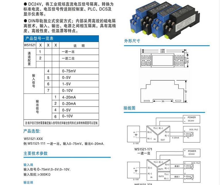 WS1521, WS1521-141信號隔離器,直流信號隔離變送器,信號隔離轉換模塊。