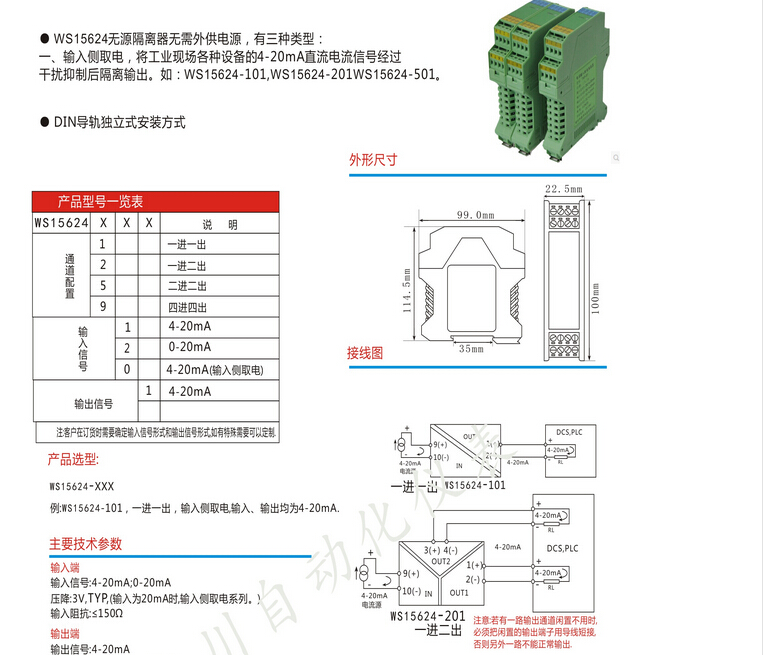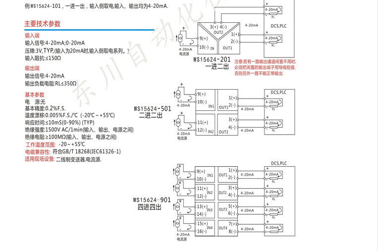 WS15624,WS15624-111,四輸出全隔離信號隔離器