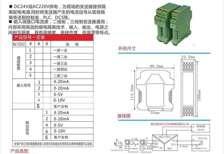 WS15242信號隔離器,隔離柵、安全柵,全隔離輸出信號分配器 隔離柵,信號隔離器模塊,安全柵,電流轉(zhuǎn)換模塊。將輸入信號變換為兩路相互隔離的信號,低功耗,低熱量,低漂移,DIN T型導(dǎo)軌安裝