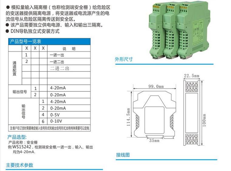安全柵 輔助電源:DC24V 或AC220V工作電源,高精度:0.1%
