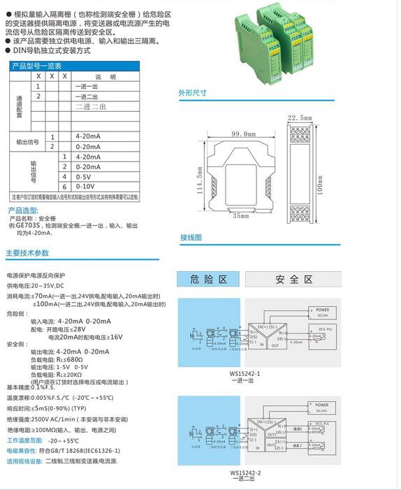 檢測(cè)端安全柵 隔離式安全柵 詳細(xì)技術(shù)參數(shù)及接線方式
