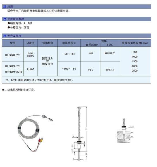 適合于電廠汽輪機(jī)及電機(jī)軸瓦或其它機(jī)體表面測(cè)溫。