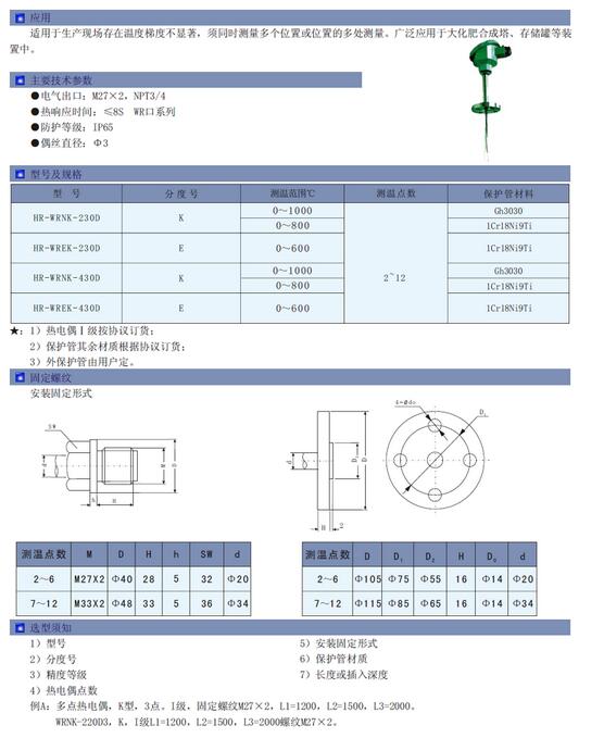 HR-WR多點(diǎn)熱電偶HR-WRNK-2300,HR-WREK-2300,HR-WRNK-4300,HR-WREK-4300,