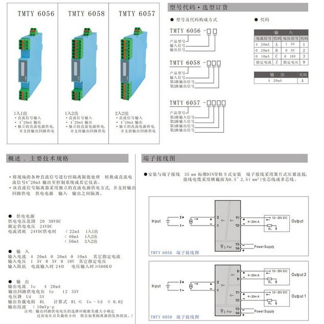 TMTY6056,TMTY6057,TMTY6058 ,TMTY6056-1A,直流信號(hào)隔離器(支持輸出回路供電)