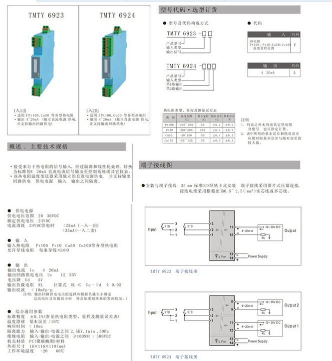 TMTY6923,TMTY6924 ,TMTY6923-FA,TMTY6924-FA,熱電阻輸入隔離變送器(支持輸出回路供電)