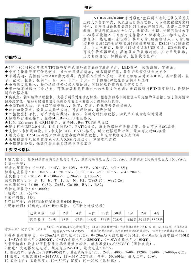NHR-8300/8300B,8路彩色/藍(lán)屏調(diào)節(jié)無(wú)紙記錄儀