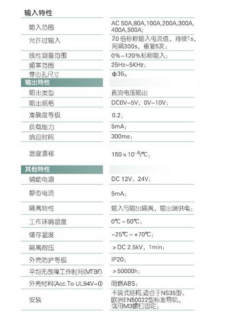 輸入規(guī)格:AC 0-500A范圍可選