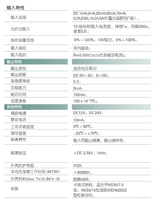 輸入規(guī)格:DC 1mA~5A范圍可選,外置分流器可擴(kuò)展