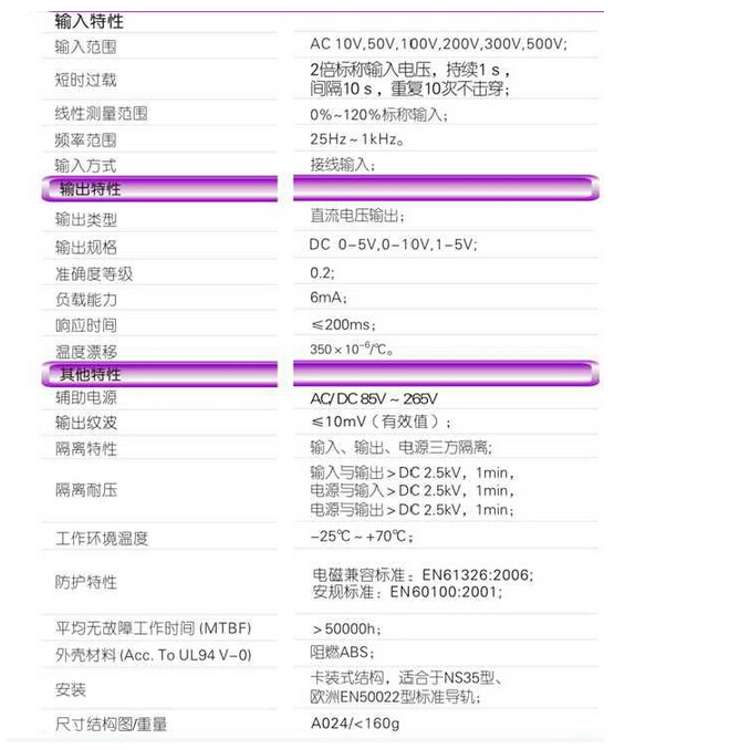 輸入規(guī)格:AC 10V~500V范圍可選